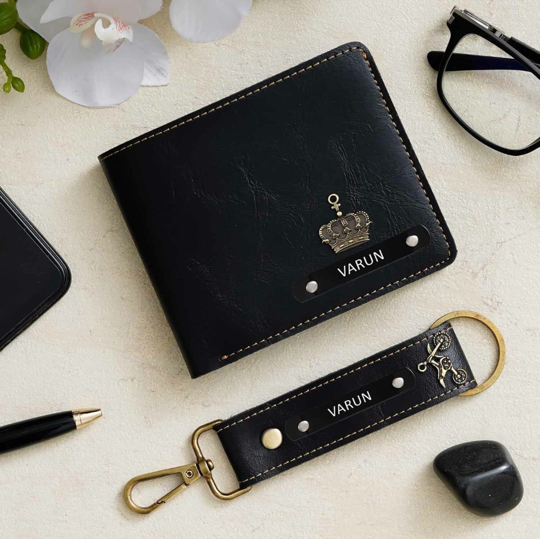 This box literally contains all that he needs, from a personalized wallet which keeps his money secured and a keychain to hold valuable keys