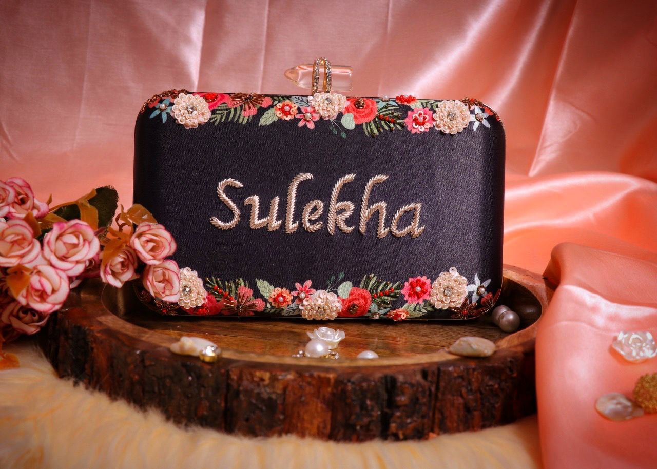 Be the first to review “Highlighted Embroidered Name Clutch with Rose Knob” Cancel reply